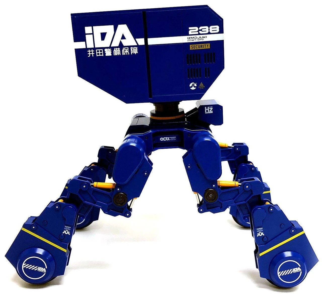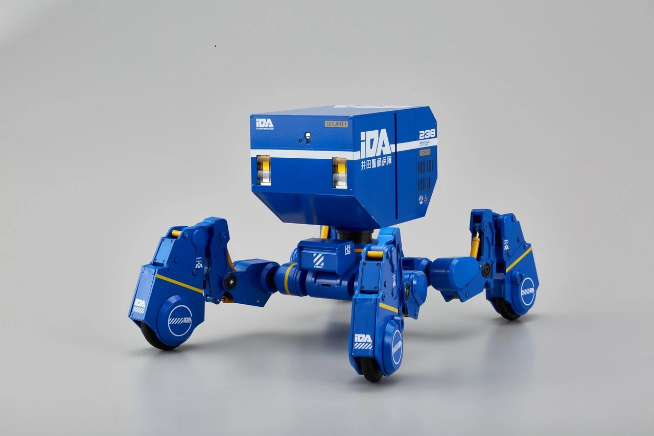 This IDA Security edition of Probe 20WT comes in blue with white and yellow markings. As with earlier release it will come fully articulated and the parts are designed so that you can combine them with parts of other types of the IZMOJUKI series to form your own mecha.