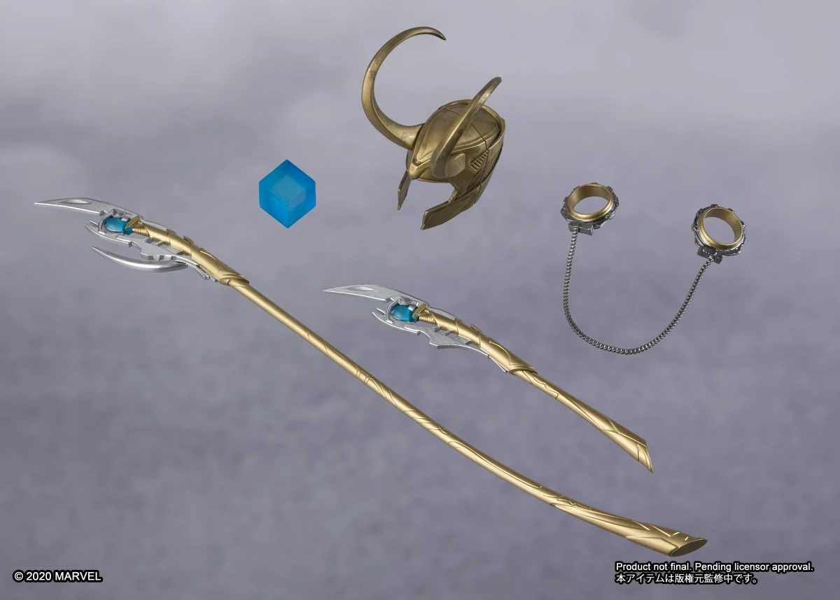 Loki joins S.H.Figuarts in his armored look from “Avengers”! In addition to the handcuffs and mouth restraint that replicate the scene where he was captured, a variety of optional parts are included, such as his staff (extended/stored), the Tesseract, and an optional mischievous smirk face part.