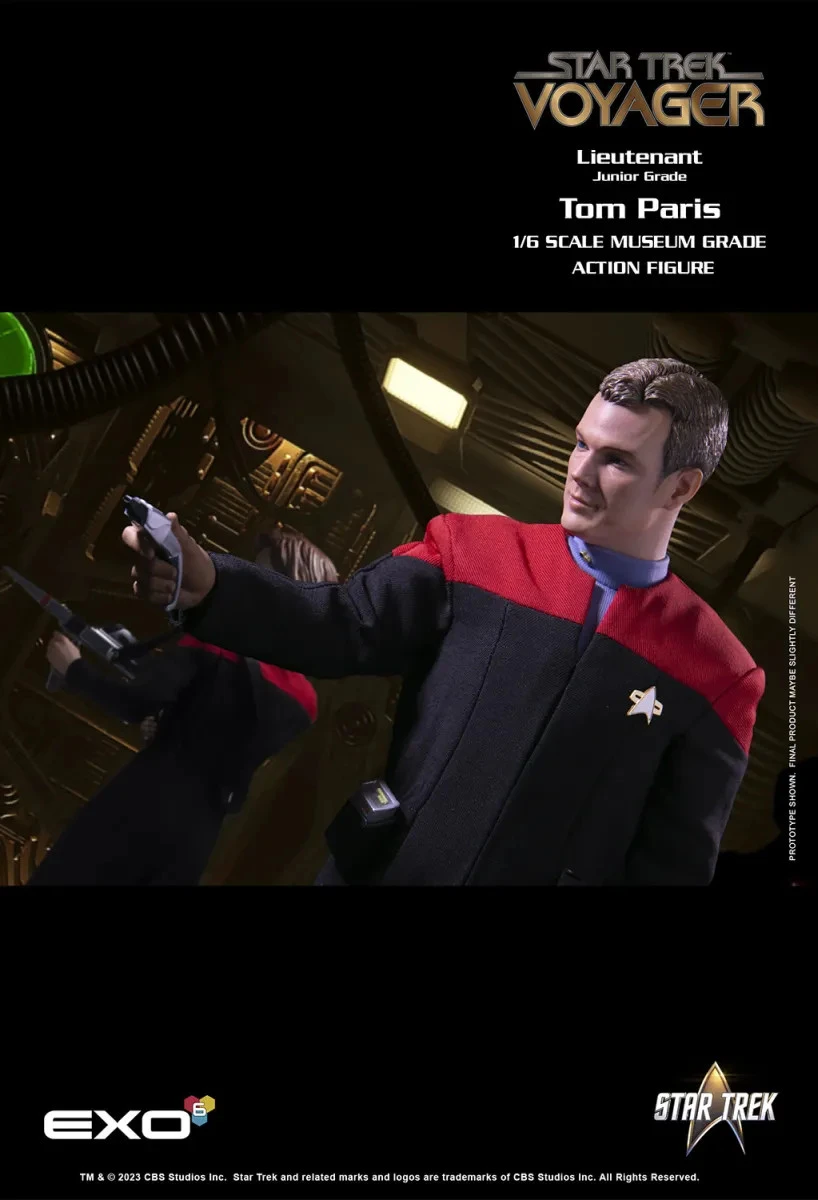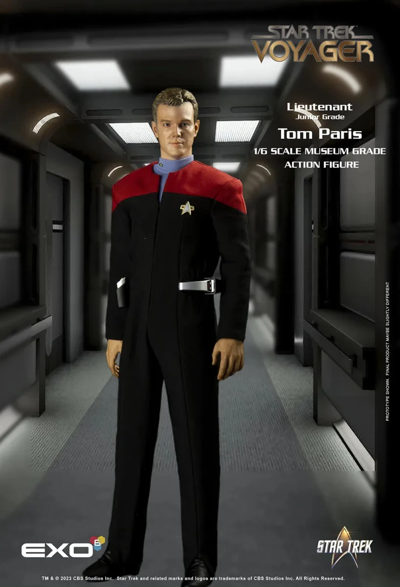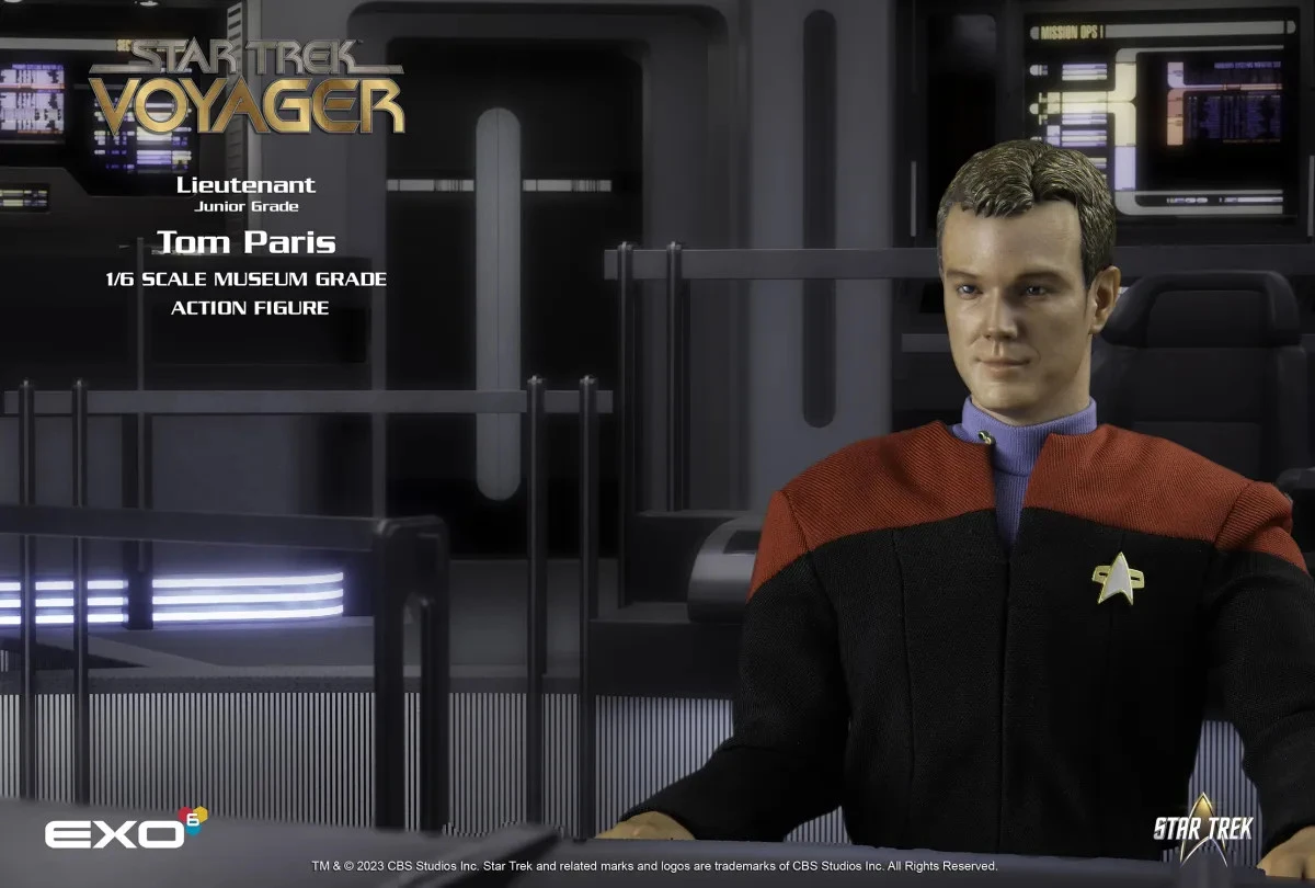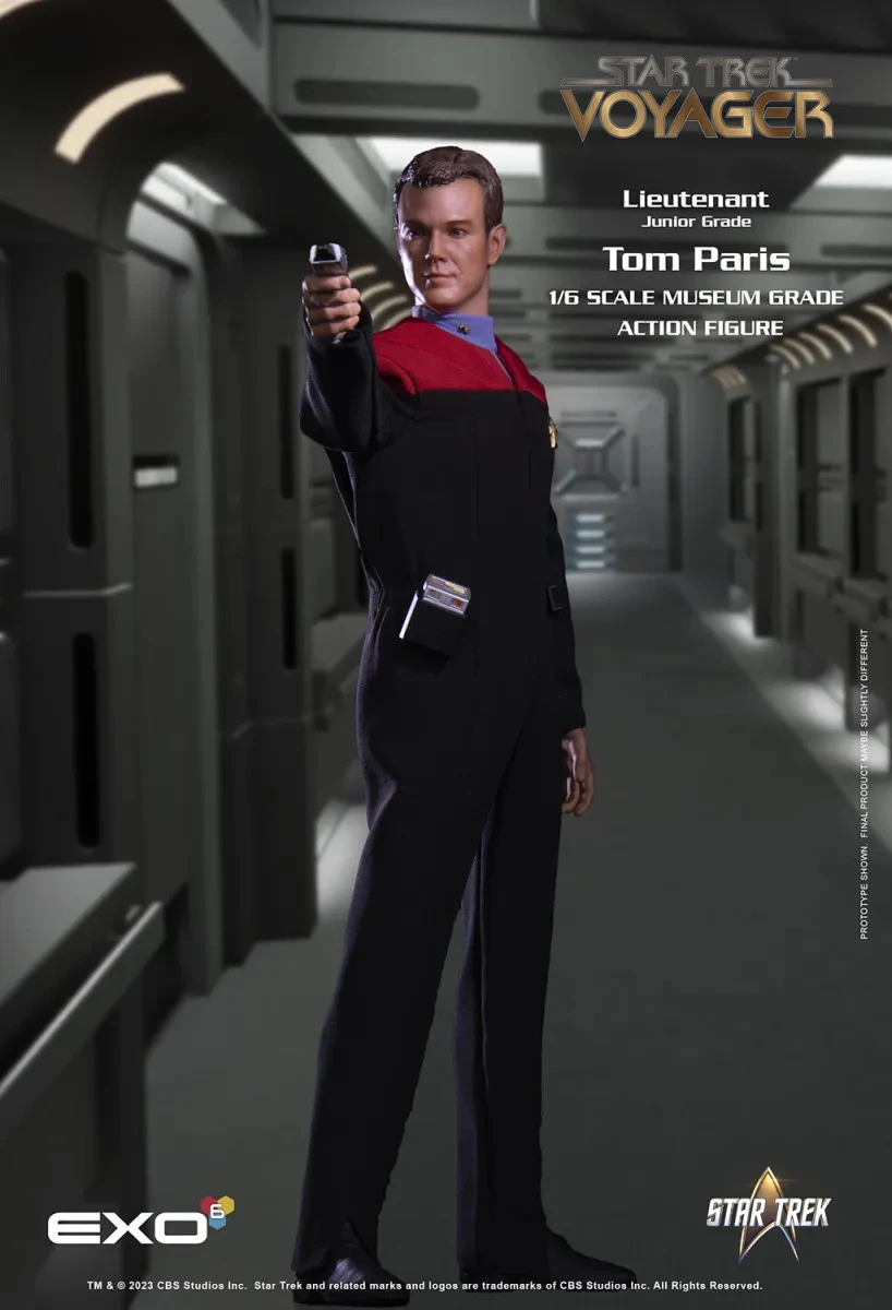 This 1:6-scale figure re-creates this iconic character in exquisite 1:6 detail. Standing approximately 12 inches tall, every element, from his 24th century jumpsuit to his Starfleet boots, is authentically reproduced. The original portrait sculpt of Robert Duncan McNeill as Paris has an authentic, hand-painted likeness.