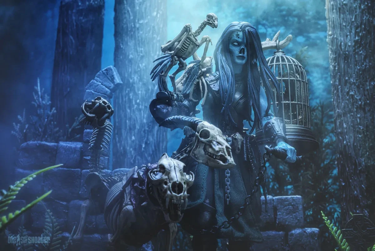 When Necronominus was recalled to Mythoss, he did not return alone. Loyal acolytes of the Lord of Death who had been banished with him after the First Great War returned as well, including the ghoulish child of Necronominus named Belualyth. A beastmaster who commands a skeletal chimera, the legion of Turpiculi, as well as other unnatural monsters that have not been seen in Mythoss since the First Age, she resumes her role as one of the generals in her father’s undead army.