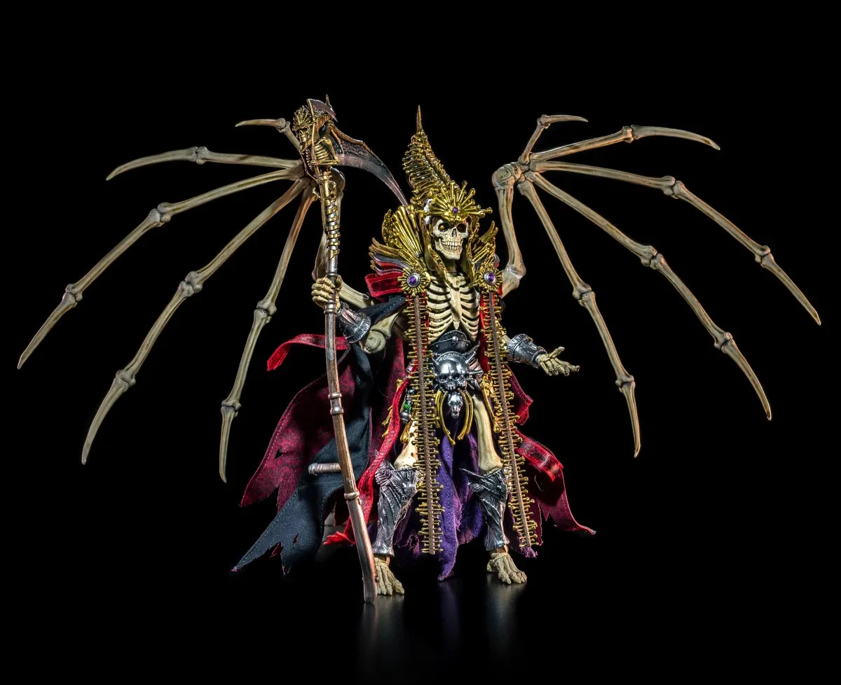 The last of the Dark Four to return to Mythoss, Necronominus is the most powerful of these evil Gods. While the Dark Four have no leader, they all defer to Necronominus, for all their powers lead to death, and that is his domain. A vision of pure horror clad in tattered vestments and wielding the mighty Godrazor, Necronominus resurrects an army of the undead to follow behind him. They are a mindless force totally devoted to the Lord of Death and his children, an army that swells as fallen foes are touched by the dark magic of the Godrazor to become soldiers for the Congregation of Necronominus.