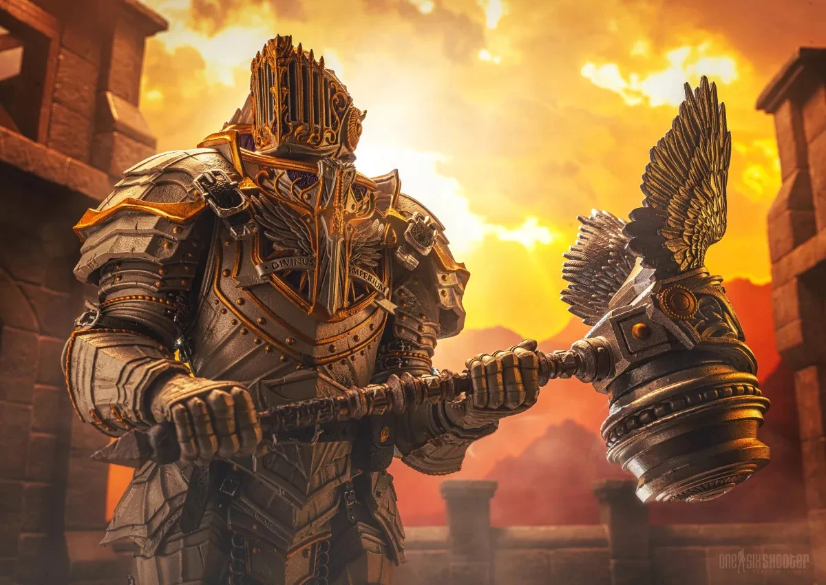 Once as evil and savage as the rest of the Impure, the Ogre named Ucczajk was visited in his sleep by a vision of a golden bird wreathed in flames that cleansed rather than consumed. Waking from his dream, Ucczajk immediately made his way to Eathyross. Seen as a threat and turned away, the Ogre found a simple hut in the mountains. Here he made his home, combing over prayer books and collecting small trinkets left behind by a mystic who had found enlightenment many years prior. Travelers through the land told the strange tale of the remote hut and the devout Ogre who now prayed to Eathyron. These tales eventually made their way to Sir Gideon Heavensbrand, and the leader of the Order sought out the Ogre and bade him return with him to the Crowned City. Today, Sir Ucczajk is one of the most faithful, and most powerful, warriors fighting for the Legions of Light.