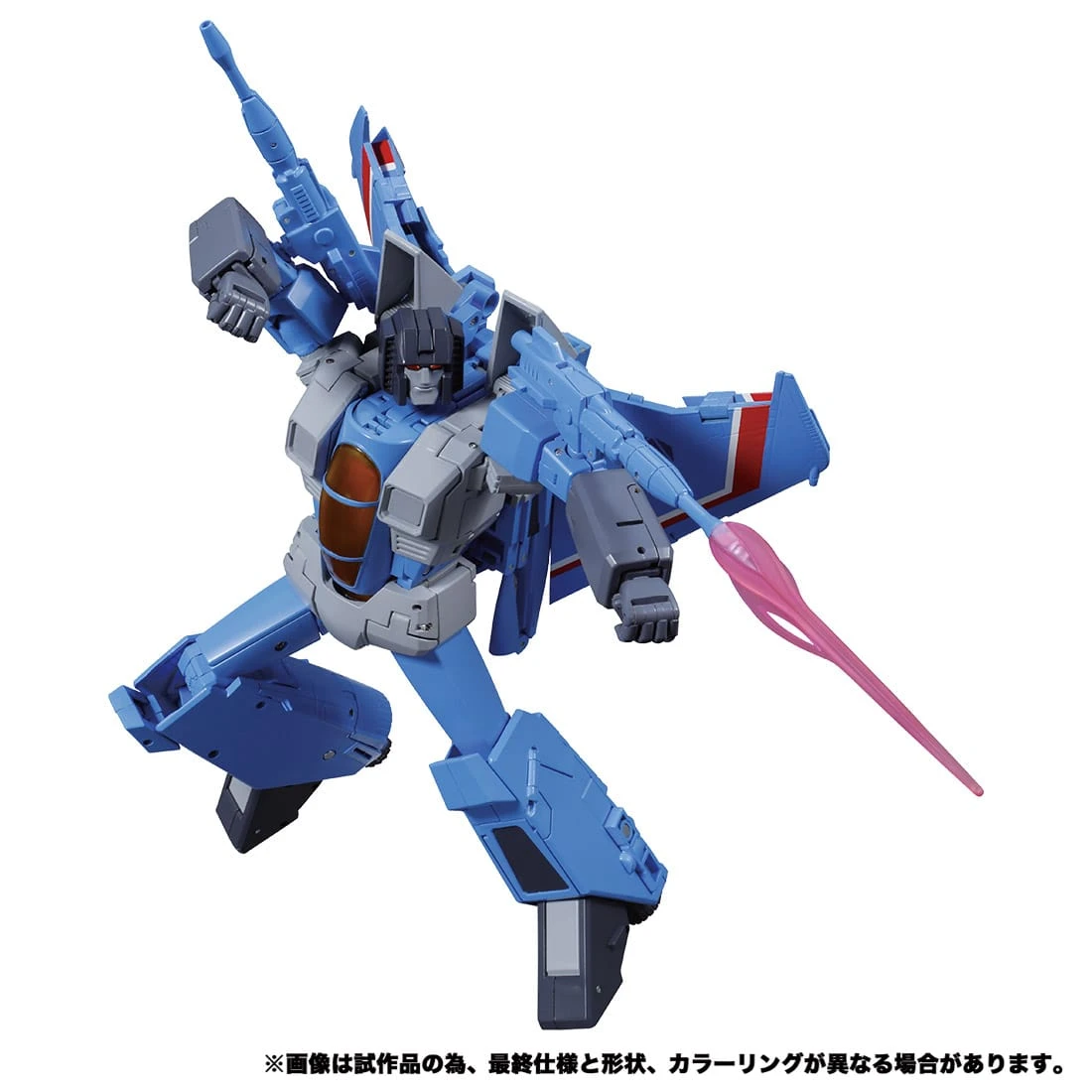 From Hasbro Toy Group. Destron warrior Thundercracker from animated television show The Transformers, joins the Masterpiece collection from Hasbro! The F-15 Eagle aircraft is officially licensed by Boeing, and the fully-poseable Thundercracker can easily recreate dynamic poses from the show! In Robot mode, the vertical stabilizer and the horizontal stabilizer can be stored in the main body. Thundercracker includes plenty of parts: 3 types of replacement faces and 5 types of effects! Be sure to add this Masterpiece collection Thundercracker to your collection today.