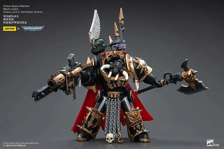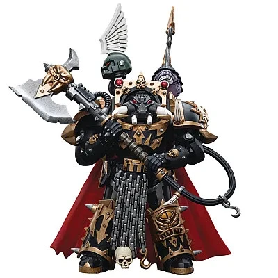 Presenting the JoyToy Action Figure Warhammer 40K Chaos Space Marines Black Legion Chaos Lord in Terminator Armor! This exciting addition to the JoyToy 1/18 scale figure collection offers fans an opportunity to own this formidable 5.31-inch tall figure. Made from durable ABS and PVC materials, this figure captures the essence of the Warhammer 40K universe. The Chaos Lord comes equipped with a helmet, axe, chainsaw gun, and two pairs of interchangeable hands, allowing for customizable display options. Expand your Warhammer 40K collection with this intricately detailed figure that embodies the might of the Black Legion.