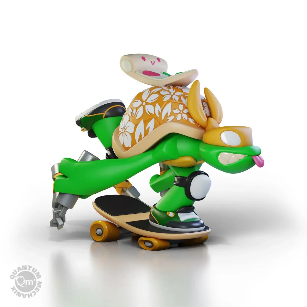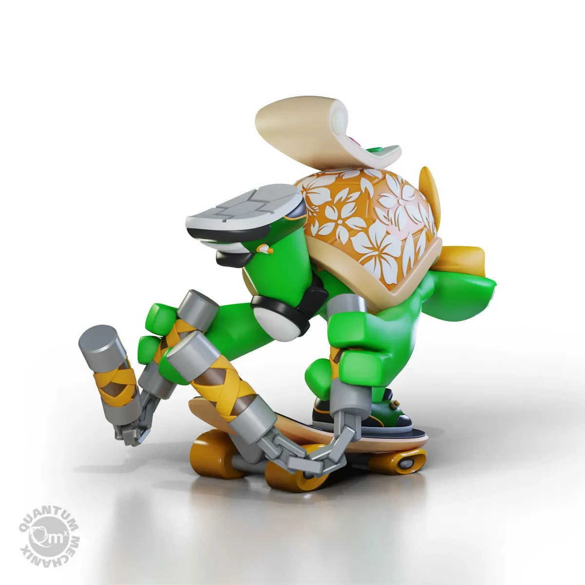 From Quantum Mechanix. Ever on the hunt for fun – and pizza – our newest member of the Art Vinyl Qrew is TMNT’s Michelangelo. Launching forward on his skateboard and presumably catching some gnarly air, Mikey measures 4.5 inches. The chibi-inspired pizza pays tribute to the influence of Japanese pop culture on this style of Art Vinyl – for more like this, see our Chu! collection. Mikey is offered in a numbered limited edition and comes with a certificate of authenticity display plaque, an authentication stamp and premium packaging.
