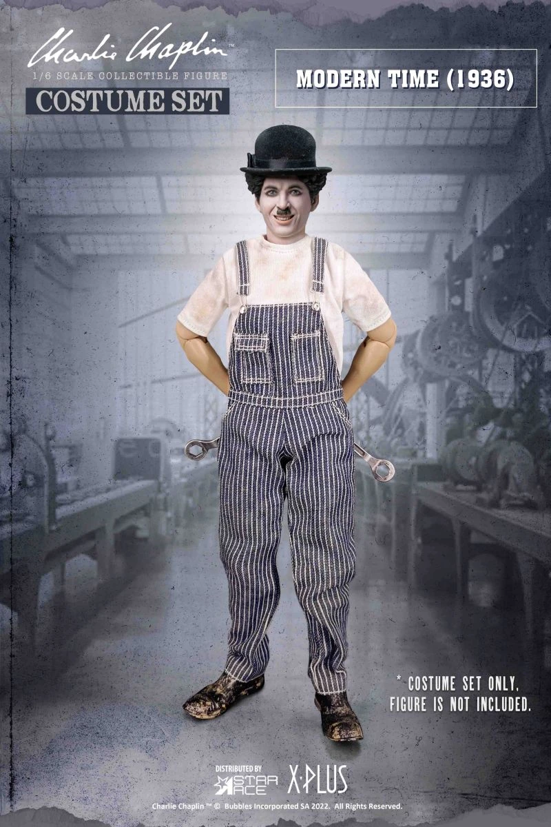 From the classic film Modern Times, a set of worker’s overall, a t-shirt and a set of wrenches.