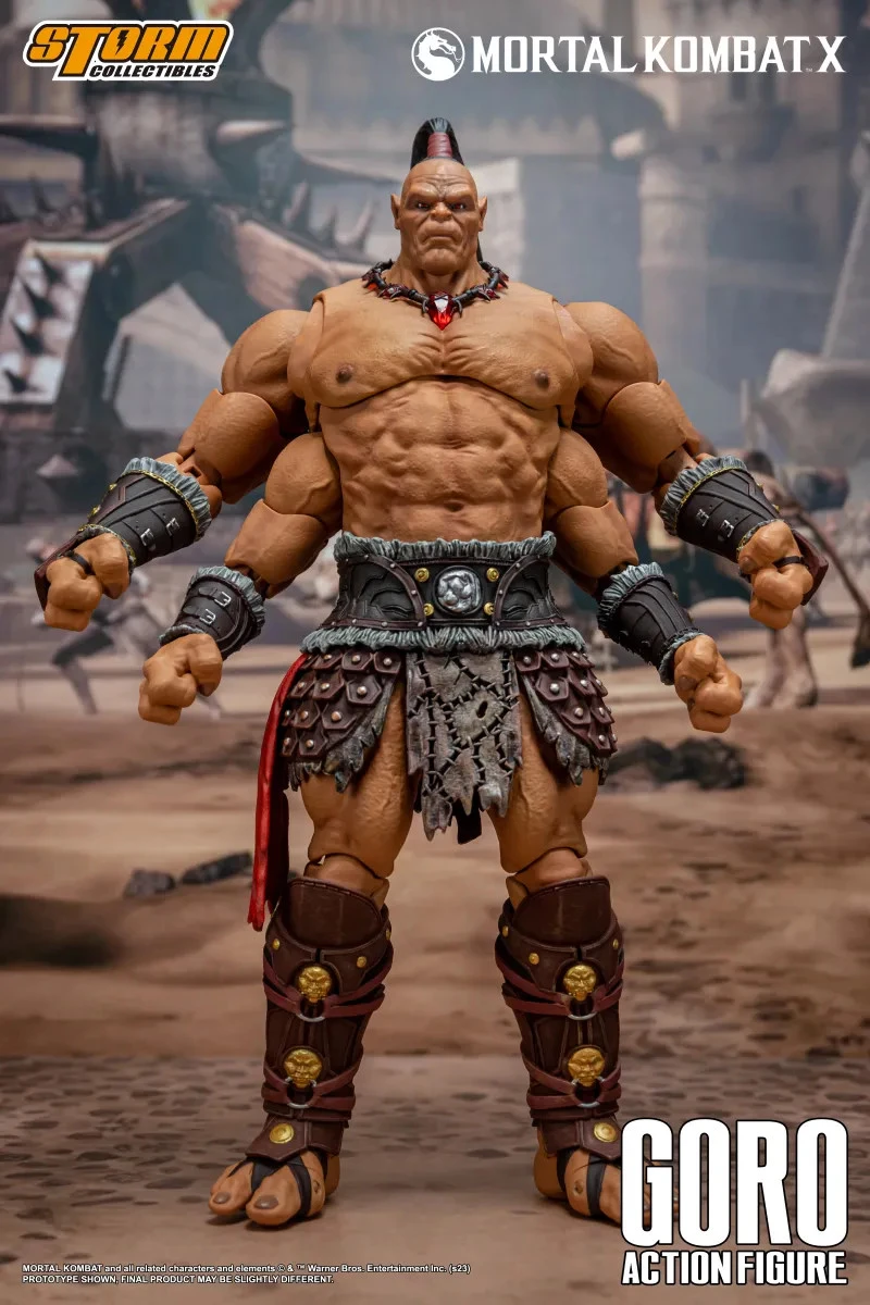 Prince GORO has brought much honor to the Shokan race by serving Shao Kahn. His bloody achievements include crushed rebellions and conquered provinces. During the past 500 years he has been celebrated for winning the last nine Mortal Kombat tournaments for Outworld. Should he defeat Earthrealm’s champion this time, he will become more than legendary. His victory is assured. There are none in Earthrealm who can withstand the might of Goro.